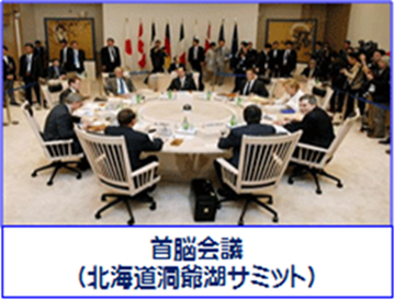 | 日本、米国、英国、フランス、ドイツ、イタリア、カナダ、ロシアの8か国の首脳並びに欧州理事会議長及び欧州委員会委員長が、年に1回集まって、その時々に世界が直面している重要な問題について話し合っています。 第1回サミットは、昭和50年に第一次石油危機等の諸問題に直面した先進国の間で、首脳レベルが直接議論する場の必要性の認識が生まれ、フランス・ランブイエで開催されました。 また、我が国では、第5、12、19回サミットが東京で、第26回サミットが沖縄で、第34回サミットが北海道でそれぞれ開催されました。 ※ ウクライナ情勢を受け、平成26年以降、ロシアはサミットに参加していません。 |